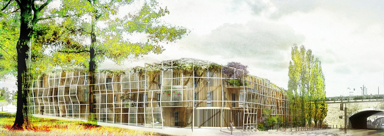 Perspecyives pour le concours pour la construction de logements pour la RIVP, Paris, France