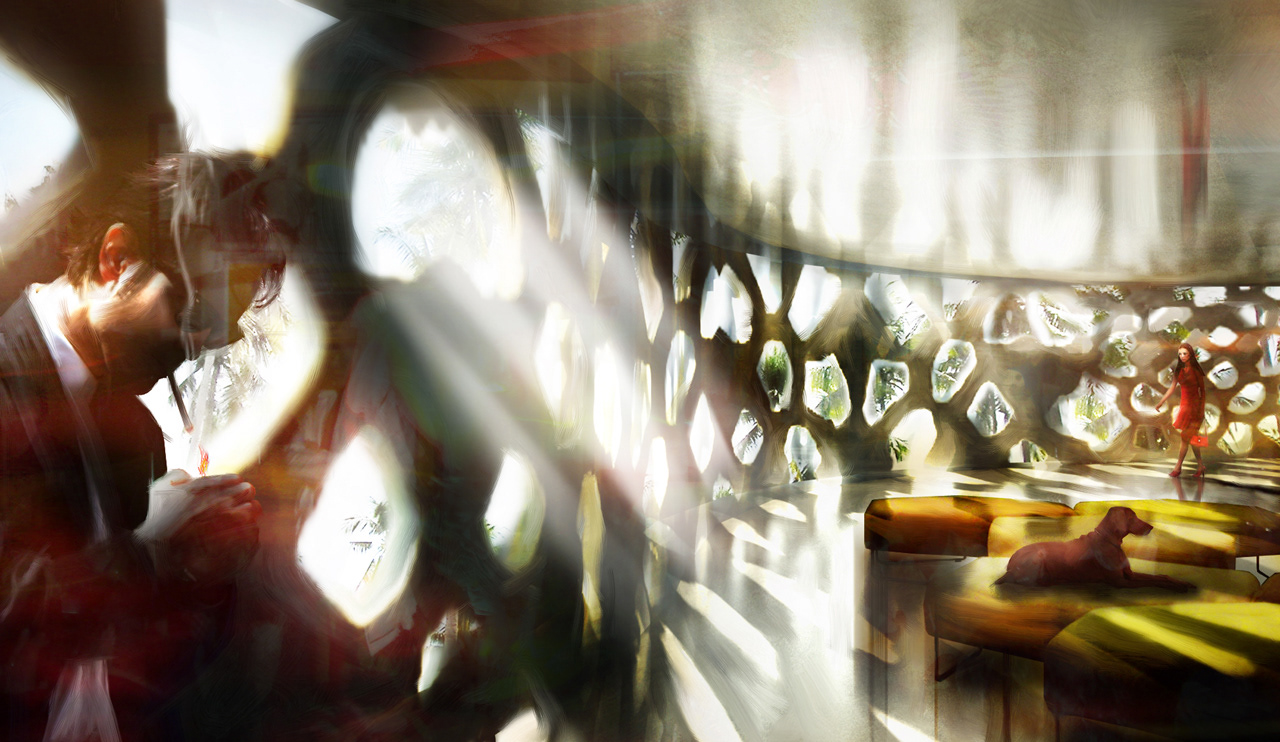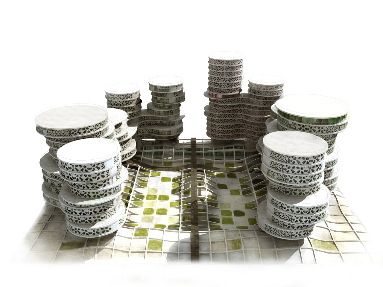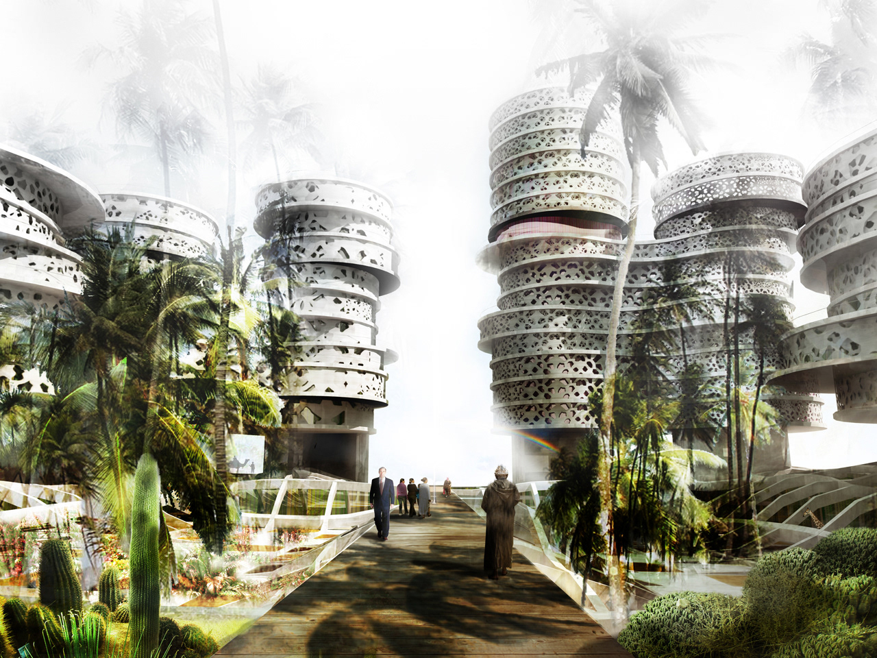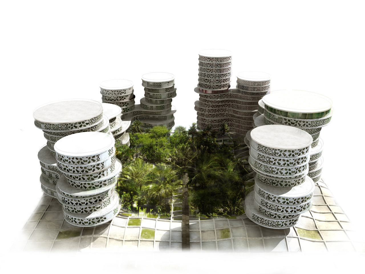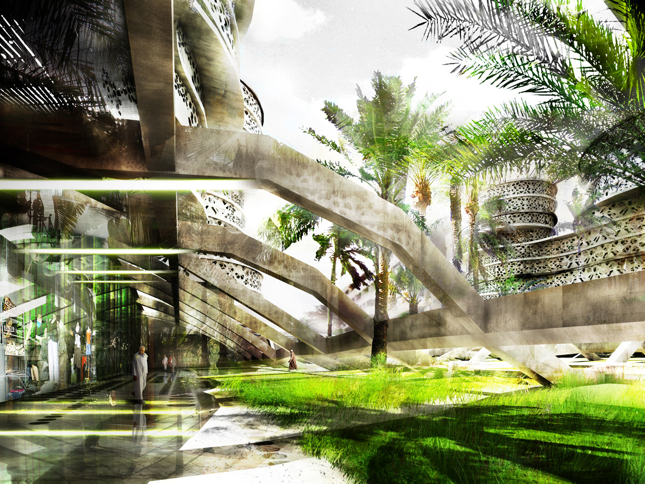 Perspective pour une esquisse pour la qualification de la place carrée à Hay Ryad, Rabat, Maroc
