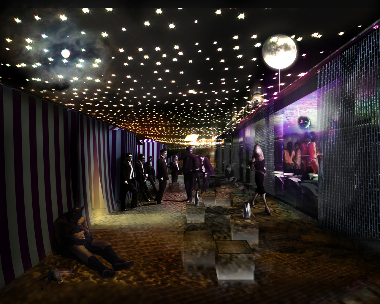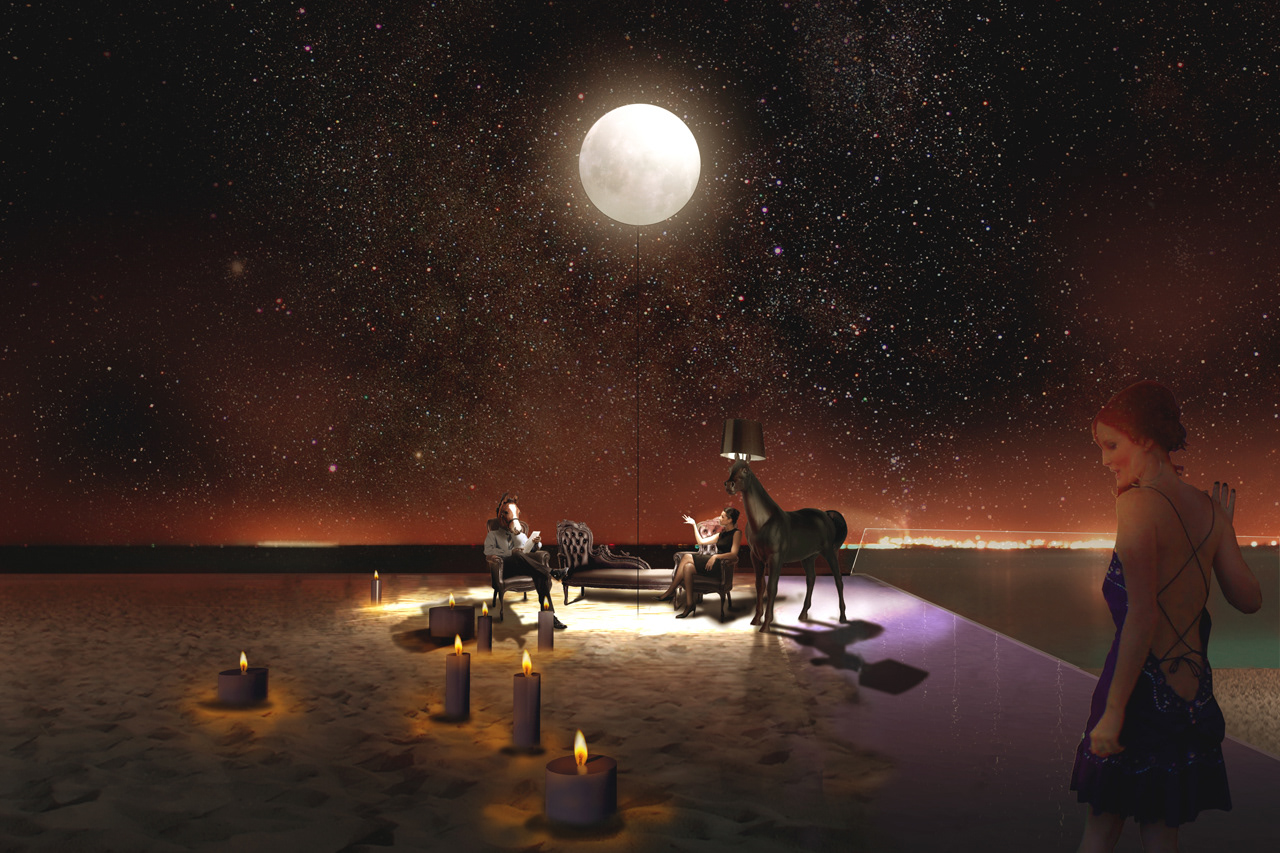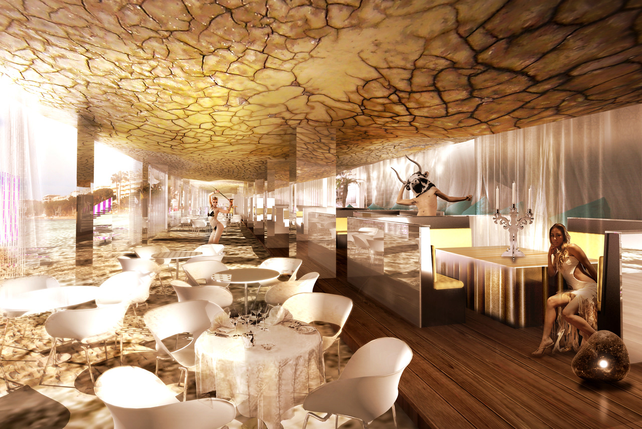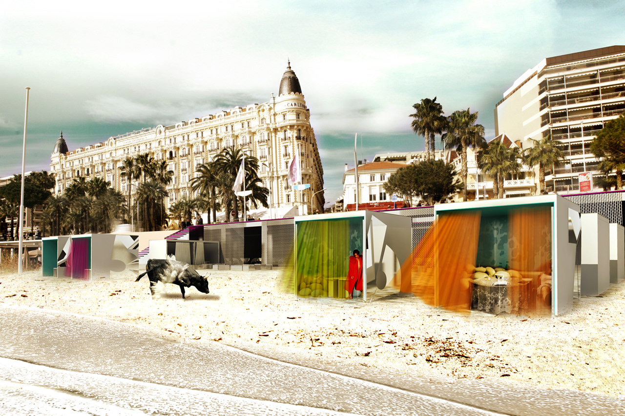 Perspectives de l'esquisse pour l'aménagement de la plage de l’hôtel 3.14 pour le festival de Cannes 2008, Cannes, France